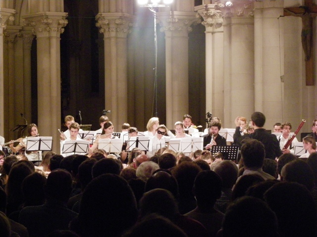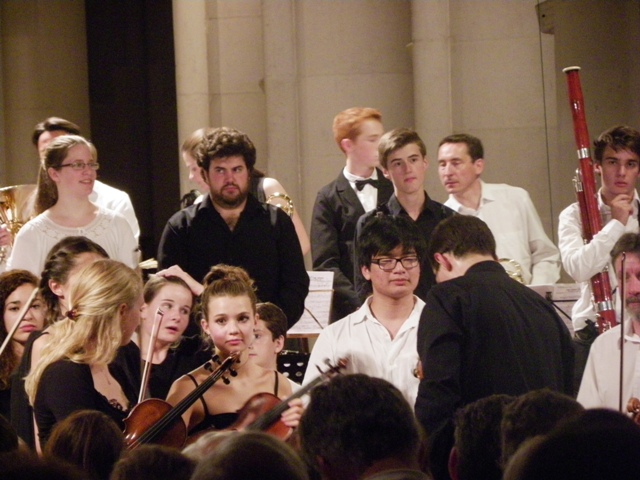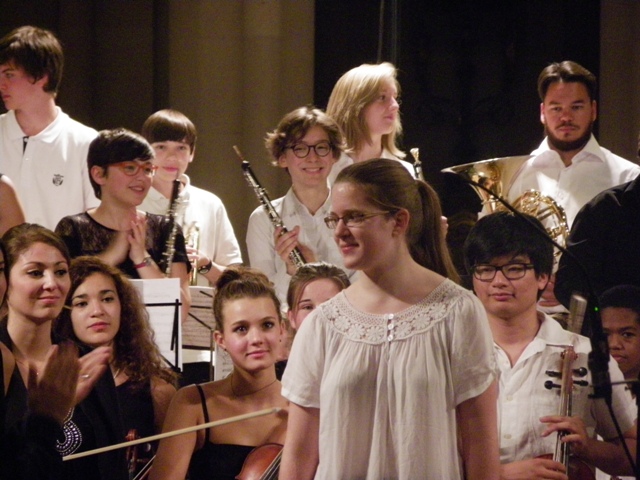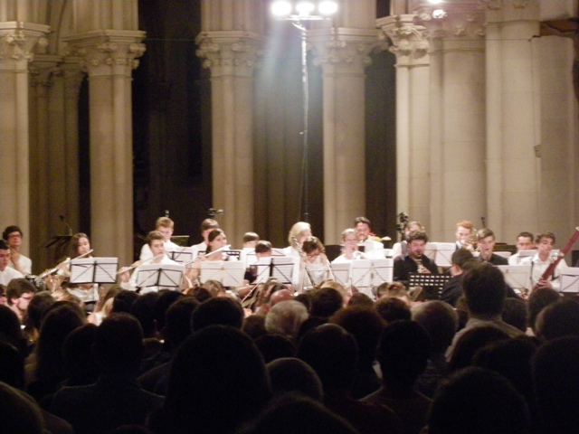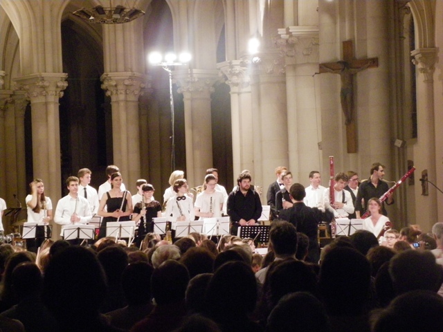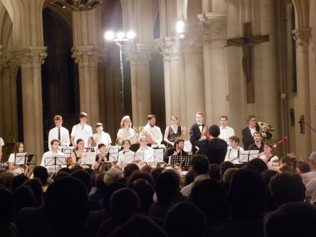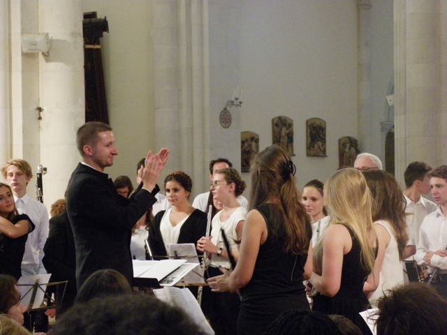 Dirigé par Mathias Charton l’harmonie, l’un des fleurons de l’Académie ouvre l’après-midi de concerts. La foule arrive, les parents sont anxieux… Mais tout va parfaitement se passer, Mathias a veillé au grain, tout est prêt, tout est net, il lève le bras et la musique opère son charme. Dynamisme, puissance et nuances nous conduisent comme sur un petit nuage, nous planons au dessus de l’orchestre.